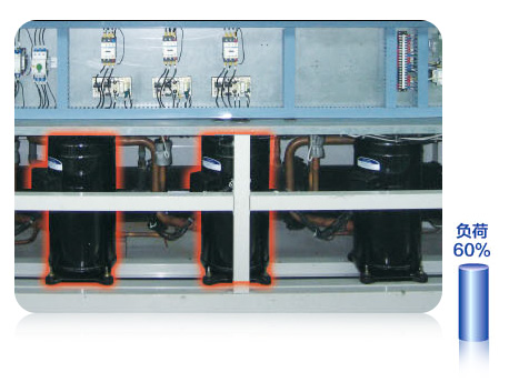 壓縮機(jī)分時(shí)啟動(dòng),大大降低啟動(dòng)電流,減小電網(wǎng)壓降帶來(lái)的影響;負(fù)荷較小時(shí),只開(kāi)啟一個(gè)壓縮機(jī),能耗降低。