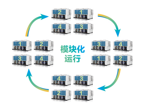 淡化主、子模塊設(shè)計(jì),任意單元模塊均可作為主模塊,輕松應(yīng)對(duì)各種突發(fā)情況;不同容量的單元模塊可以任意組合,從而形成不同冷量的機(jī)組,應(yīng)用范圍廣;單一模塊內(nèi)任意一臺(tái)機(jī)組出現(xiàn)故障,模塊內(nèi)其他機(jī)組不受影響,保證整個(gè)系統(tǒng)的冷量供應(yīng)。 |