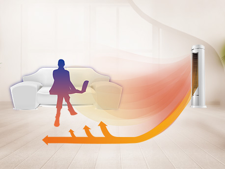空調制熱時,暖流貼著地面走,配合智能式旋轉帶來的大角度送風,讓暖流快速覆蓋整個房間,舒適暖風無處不在。 |