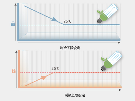 通過線控器設(shè)定制冷下限溫度與制熱上限溫度,節(jié)約能源避免用電浪費。 |