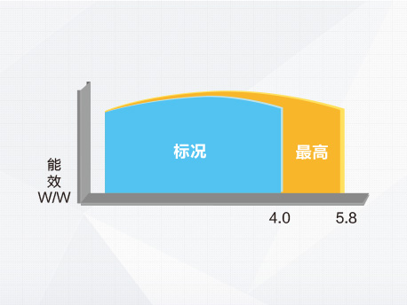 采用專業(yè)的水路設(shè)計(jì),全系列平均能效比高達(dá)4.0(可高達(dá)5.8)。 |