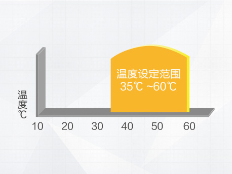 出水溫度35 ~ 60℃靈活可設(shè),適用各種熱水需求的場(chǎng)所。 |