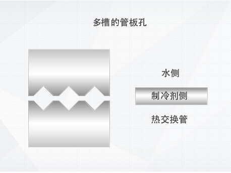 專業(yè)的3V槽管板,保證換熱管與管板的連接強(qiáng)度,換熱管與管板機(jī)械脹接密封,在脹接處設(shè)置三道密封凹槽,提高密封可靠性。