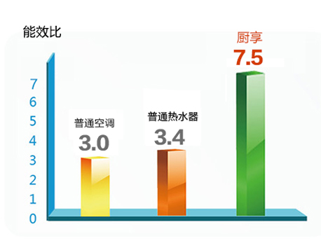 普通空調(diào)的能效比約為3.0,普通熱水器的能效比約為3.4,而廚房享的綜合能效比高達7.5,遠高于空調(diào)和熱水器的能效之和,讓您更省電。 |